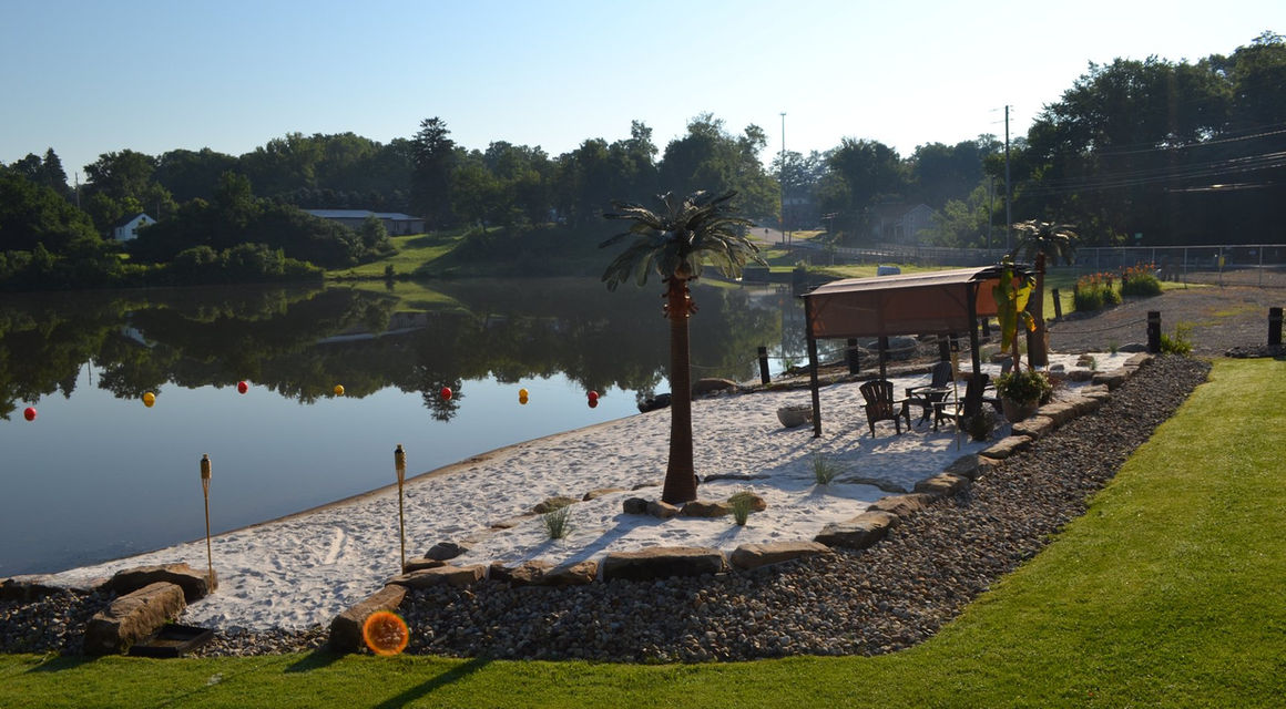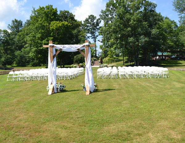 Our newly remodeled club house boasts a brand new kitchen and a his and hers changing room with adjoining bathrooms. Our property consists of 5+ acres of perfectly manicured lawns and gardens, several more acres of mature trees and wooded areas, a 30-acre lake, a steel tent suitable for up to 300 guests, two islands, three bridges, a hillside of wild flowers and a full service tiki bar.